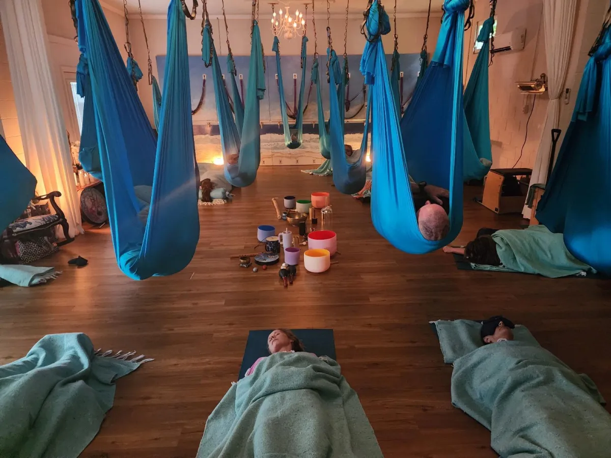 🪶 Float in a yoga hammock – weightless, cocooned, and deeply restored